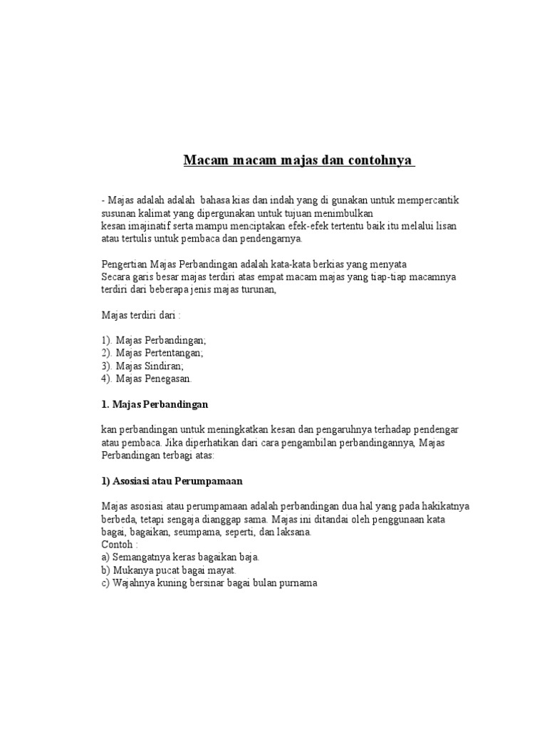 Macam macam Majas Beserta Contoh dan Pengertian.docx - Macam macam …