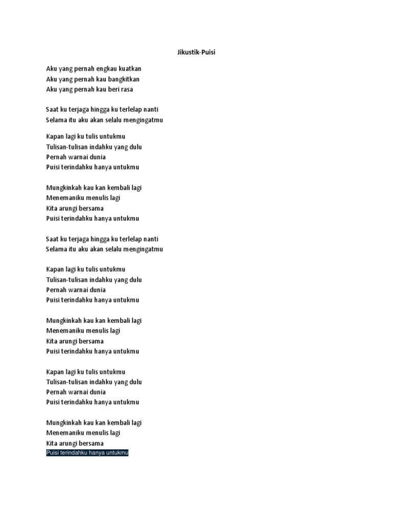LIRIK LAGU - Andien - Puisi (Cover Jikustik) - Wattpad