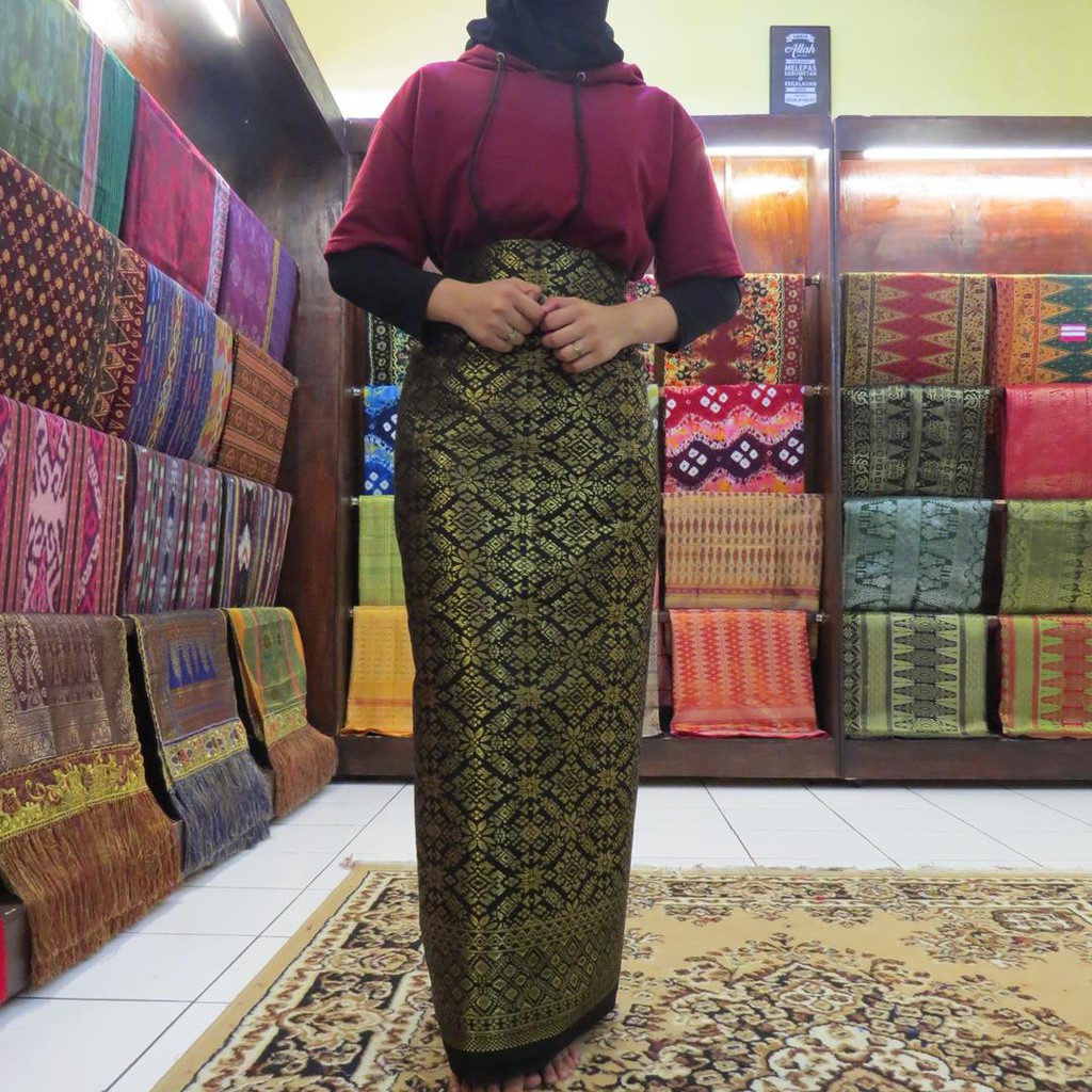 Jual Kain Songket tenun kuat kaku tebal & Rok lilit Songket Palembang semi instant Pakai Tali | Shopee Indonesia