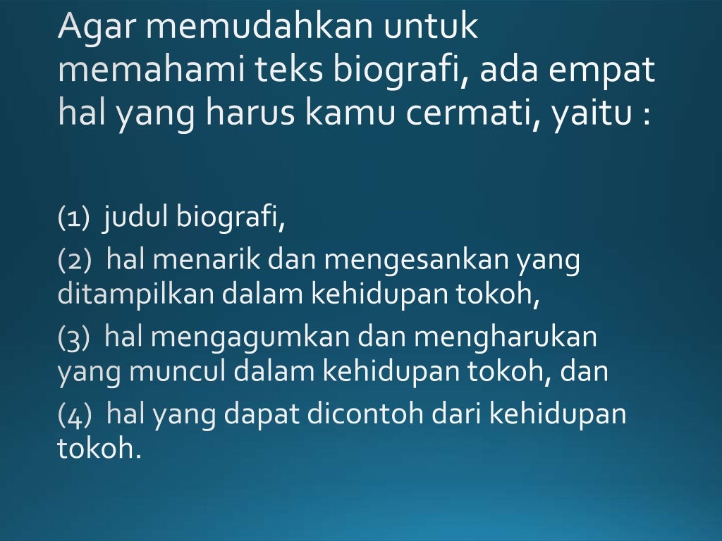 4 hal yang harus di cermati dalam teks biografi, yaitu