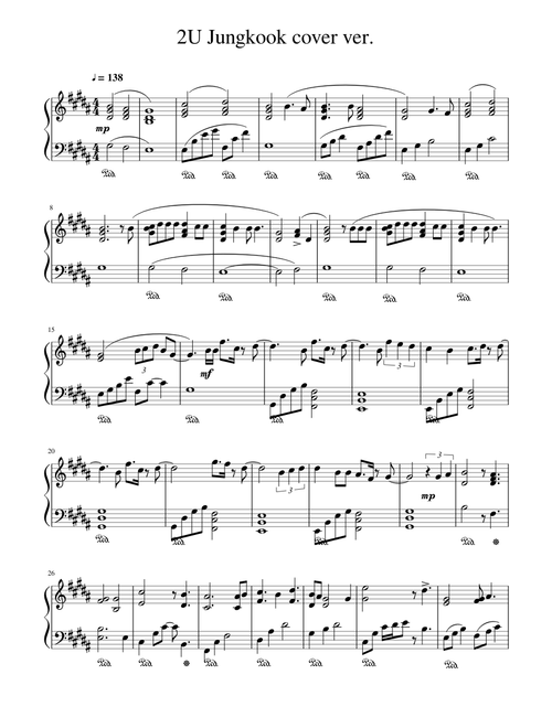 2U Jungkook covre ver Sheet music for Piano (Solo) | Musescore.com