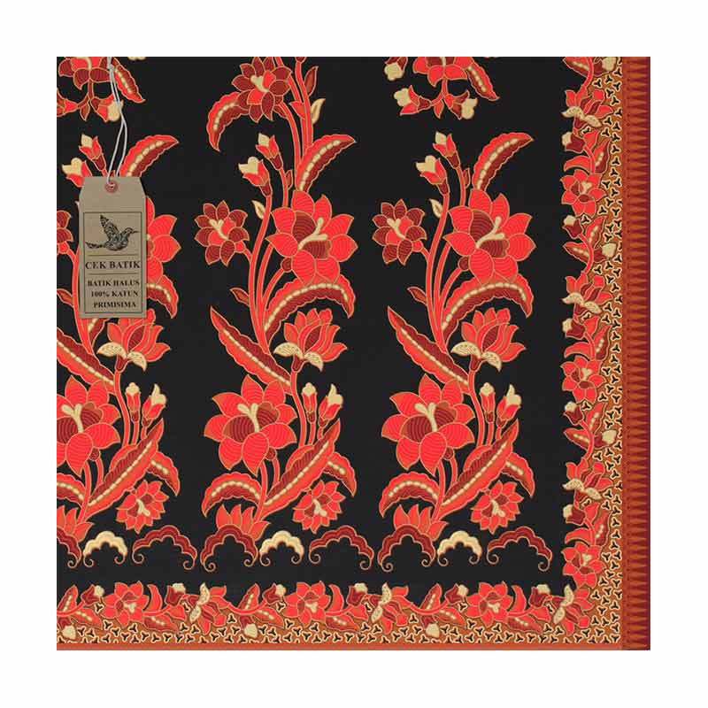 Jual kain batik - Motif Bambu Kecil Dasar Hitam Manis (Bunga Merah …