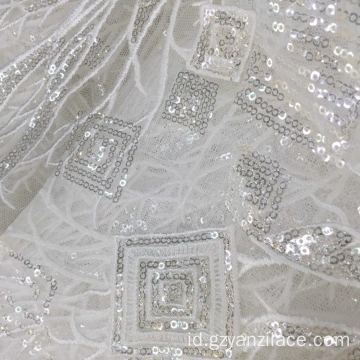 Cina Kain Bordir Sequin Tulle Kristal Putih Produsen