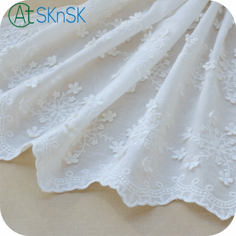 Putih 100% Katun Bordir Kain Katun Renda Trim, Rok Renda Kain DIY …