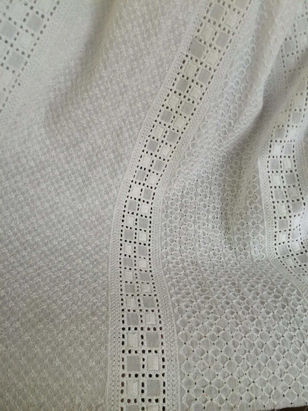 Putih 100 Lubang Katun Renda Kain Bordir Untuk Pemasok Gaun …