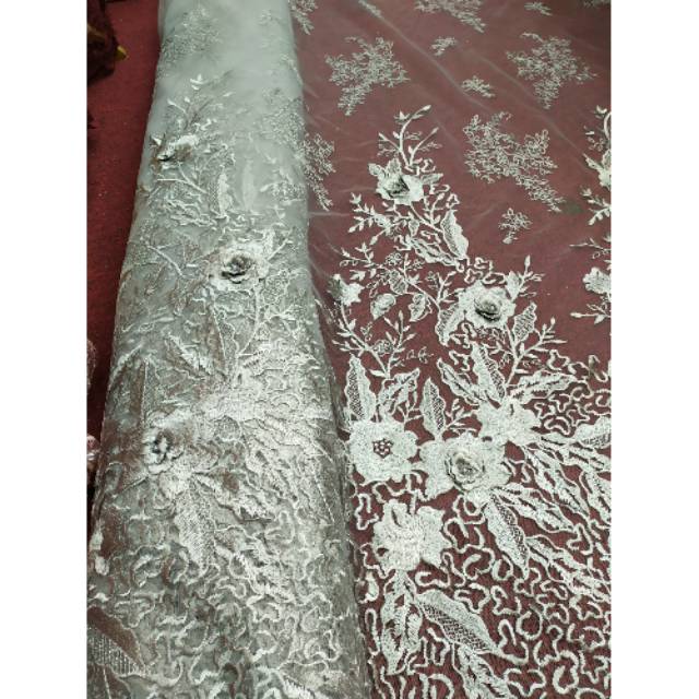 Kain brokat tile 3d bordir TL01. kain brukat tulle 3d. brokat timbul tille 3d | Shopee Indonesia