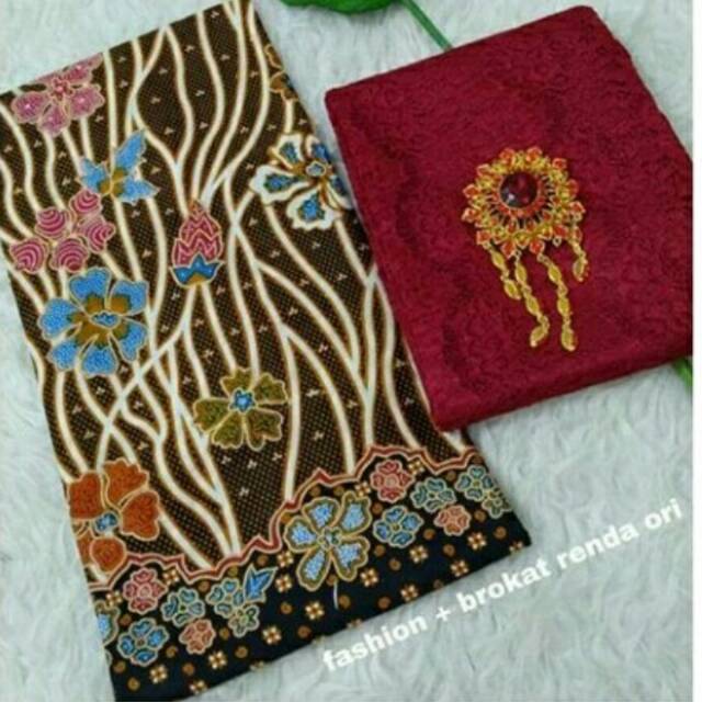Kain batik jogja motif bunga merambat dan kain brokat marun | Shopee Indonesia