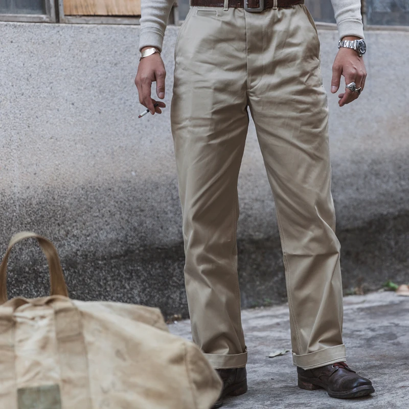 Bronson 14Oz Petugas Chino Kain Impor 1950S Katun Twill Celana Khaki Celana Panjang| | - AliExpress