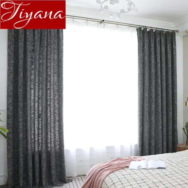 Gorden Blackout Tebal Hitam Solid Linen untuk Jendela Kamar Tidur Abu abu Kain Drape Dapur Kain Tipis Ruang Tamu Tirai X622 #30| | - AliExpress
