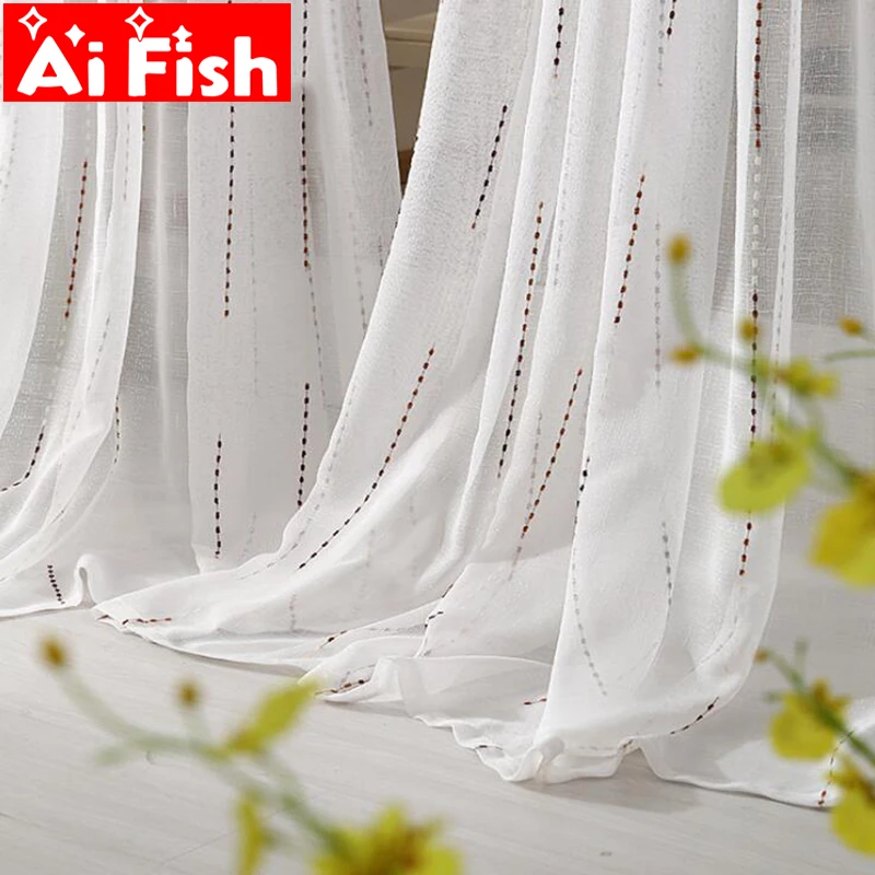 Linen Garis Gorden Jacquard Voile Putih Jendela Ruang Tamu Modern Tulle Tirai Dapur Tipis Kain Cortinas S181 & 30| | - AliExpress