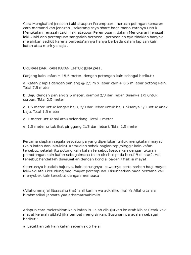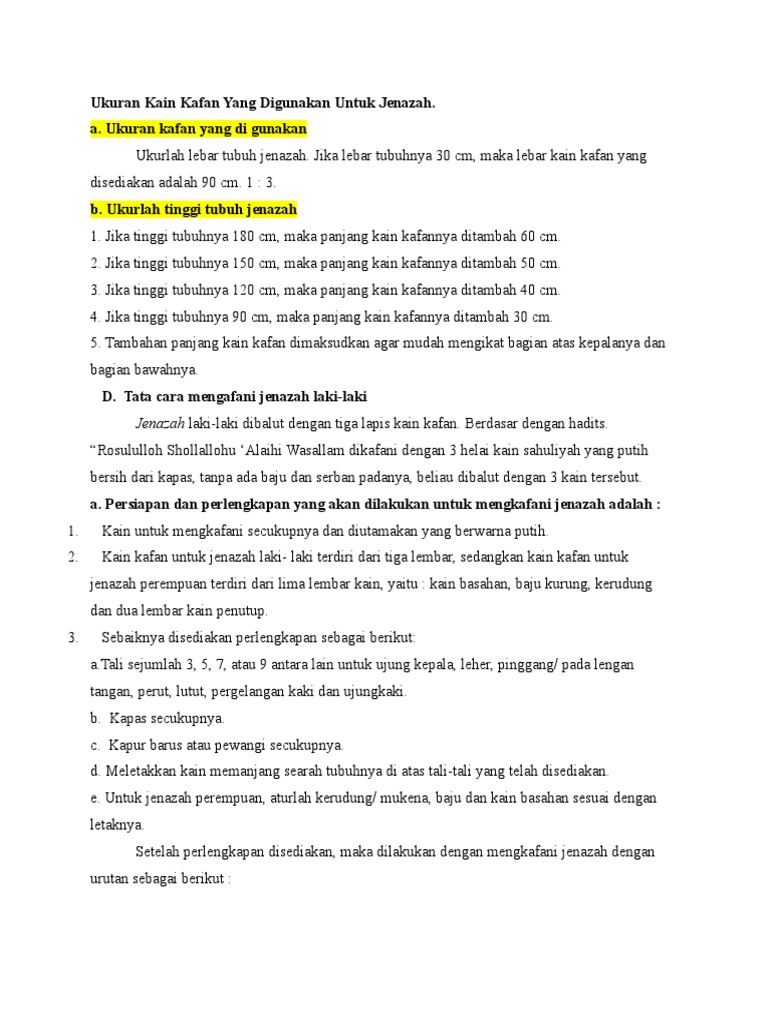 DOC) UKURAN DARI KAIN KAFAN UNTUK JENAZAH | Sulistio Yuwono - Academia.edu