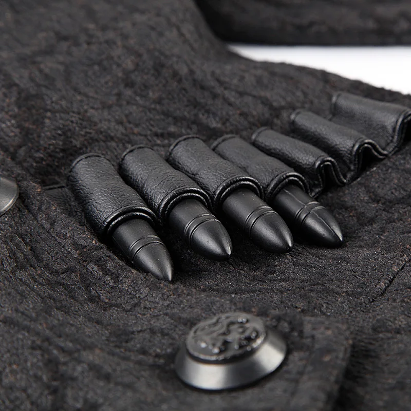 Punk Wanita Trench Coats Peluru Dekorasi Kain Kusut Hitam Mantel …