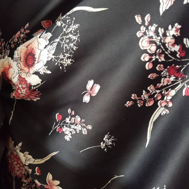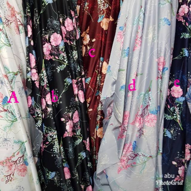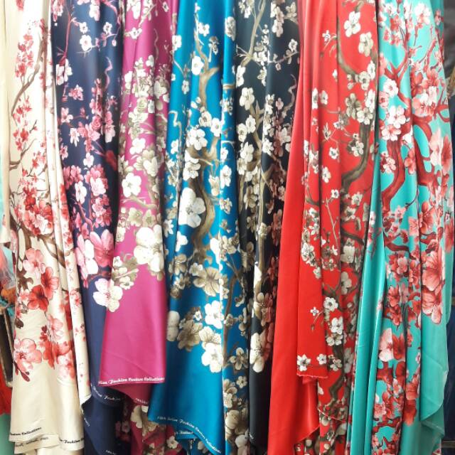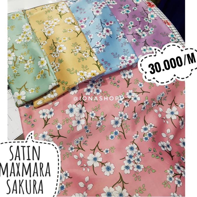 Super Murah kain satin maxmara lebar 115cm - motif bunga sakura …
