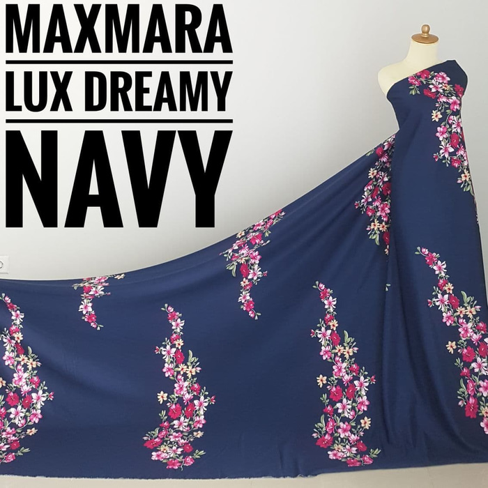 Jual Kain semisutra batik Maxmara halus Biru navy motif bunga …