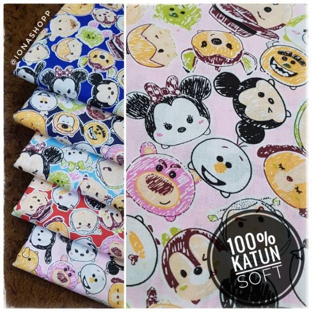 Kain katun motif disney tsum tsum / kain katun meteran motif anak | Shopee Indonesia