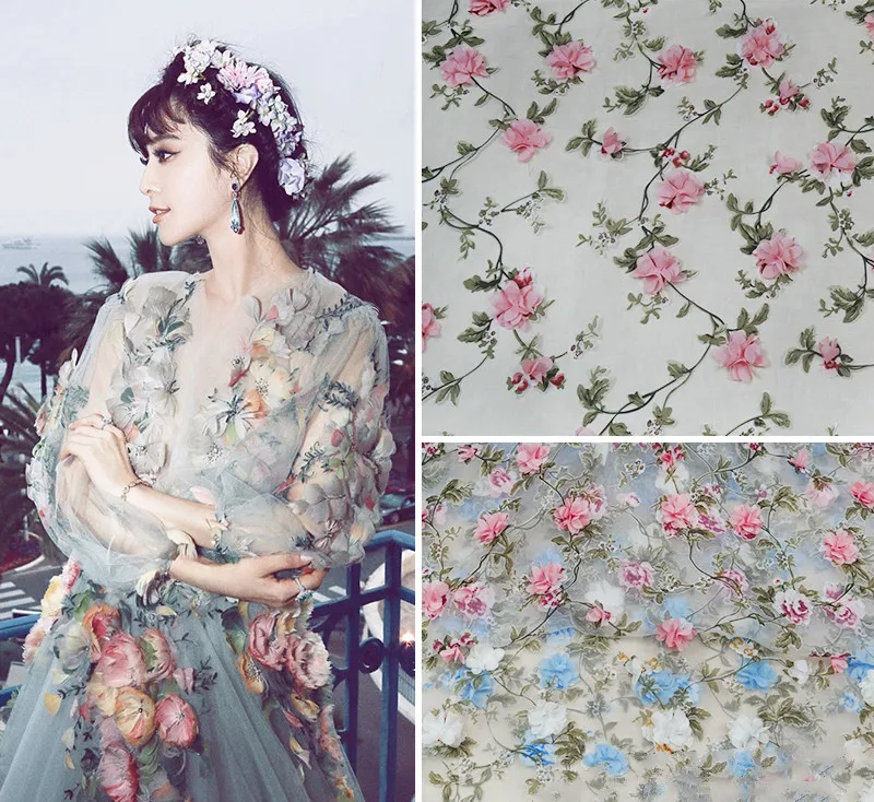 New 3D flower DIY sifon organza renda kain dicetak 130 CM applique wedding dress pakaian tas aksesoris merah muda putih biru|organza lace fabric|lace fabricorganza lace - AliExpress