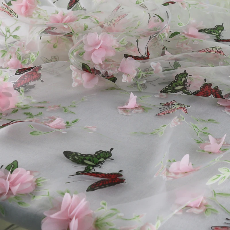 Kualitas tinggi organza renda kain 3D stereoscopic digital posisi kupu kupu pencetakan lebar lace dress accessorie|fabric 3d|fabric fabricorganza fabric - AliExpress