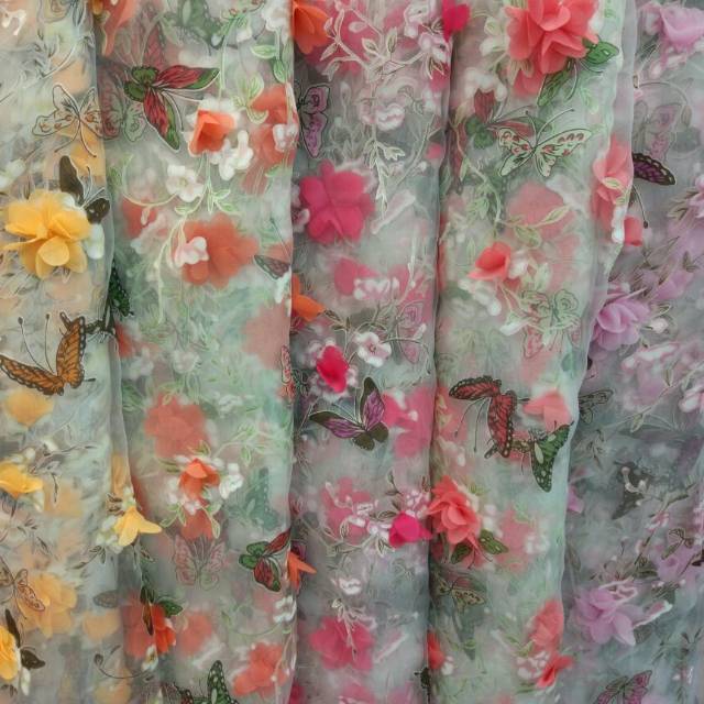 Bahan Butterfly Organza / Kain Organza Bunga Timbul | Kab …