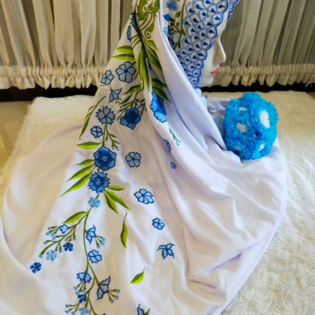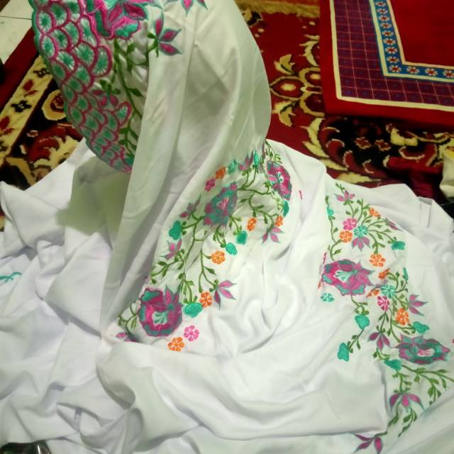 mukena bordir kain polino super silk | Shopee Indonesia