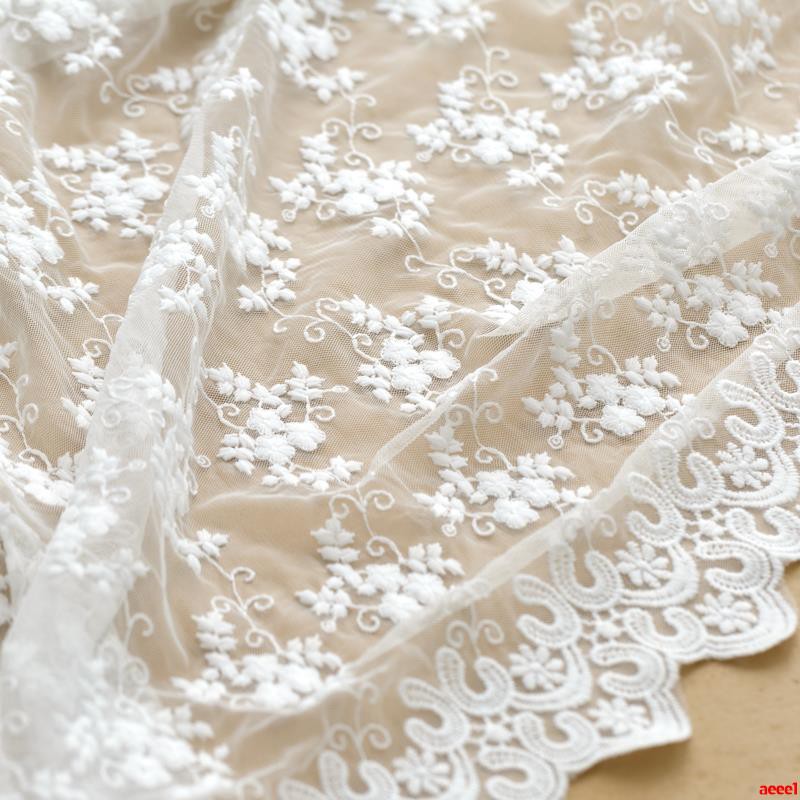 Kain Lace Katun Motif Bordir Warna Putih untuk Membuat Dress/Pakaian | Shopee Indonesia