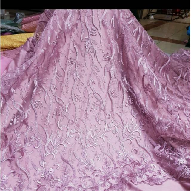 Kain tile akar mutiara tulle brokat brukat bahan pesta | Shopee Indonesia