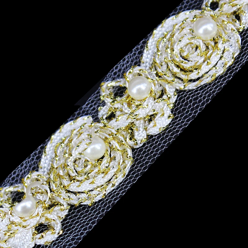 13 yard Kerajinan Beaded Putih Emas Beads Mutiara Pemangkasan Kain …