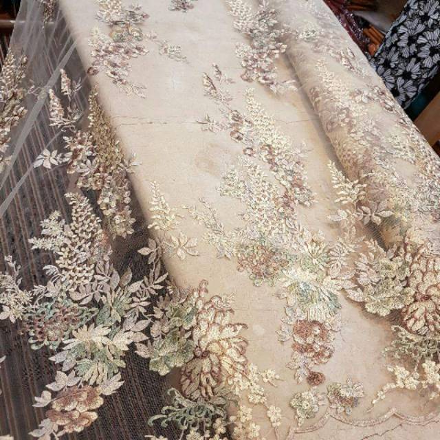 kain-bahan gaun dan kebaya tile tulle motif akar mutiara di Lapak …