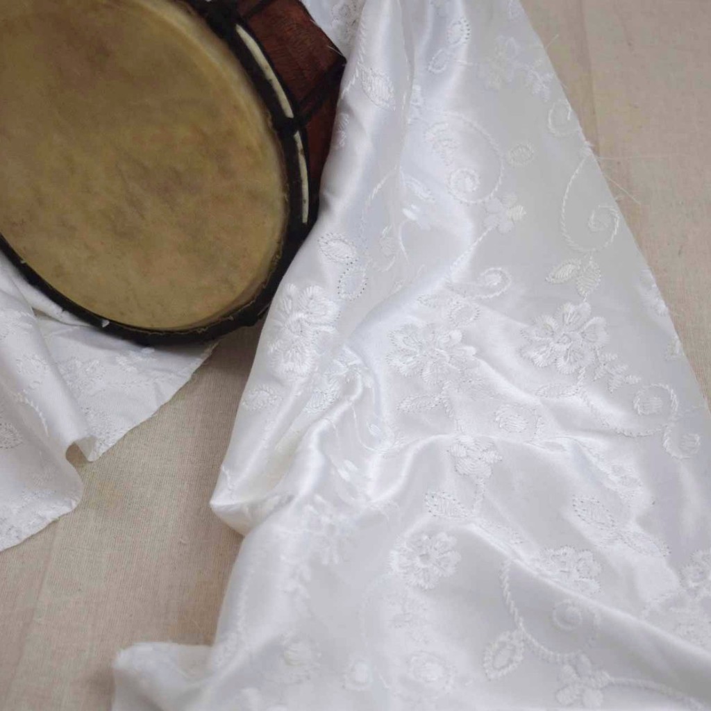 Kain SATIN VELVET BORDIR PUTIH 1 meter untuk mukena | Shopee Indonesia