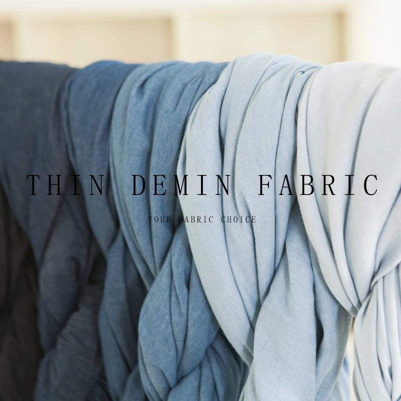 Kain katun polyester, Warna biru kain denim tipis, Gaya retro …