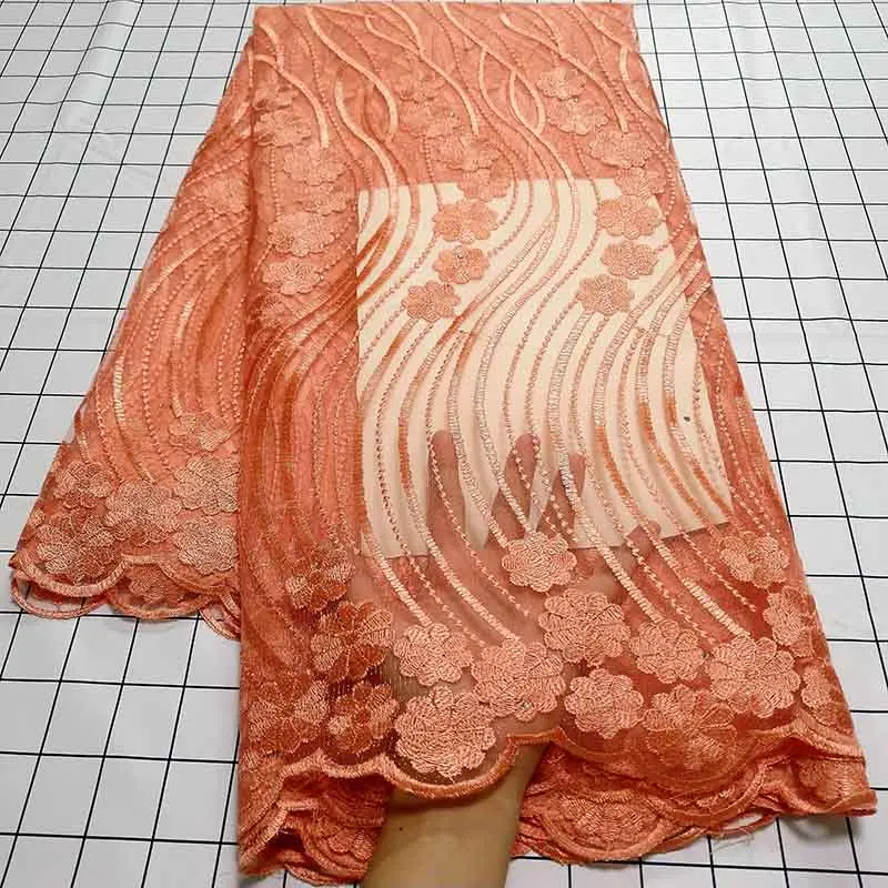 Warna Peach Bahasa Perancis Kain Renda Afrika 3d Bunga Kain Renda …