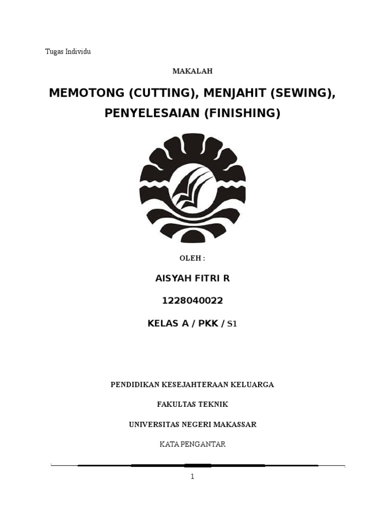 DOC) Makalah tata busana “memotong, menjahit, dan penyelesaian”. | aisyah fitrir - Academia.edu