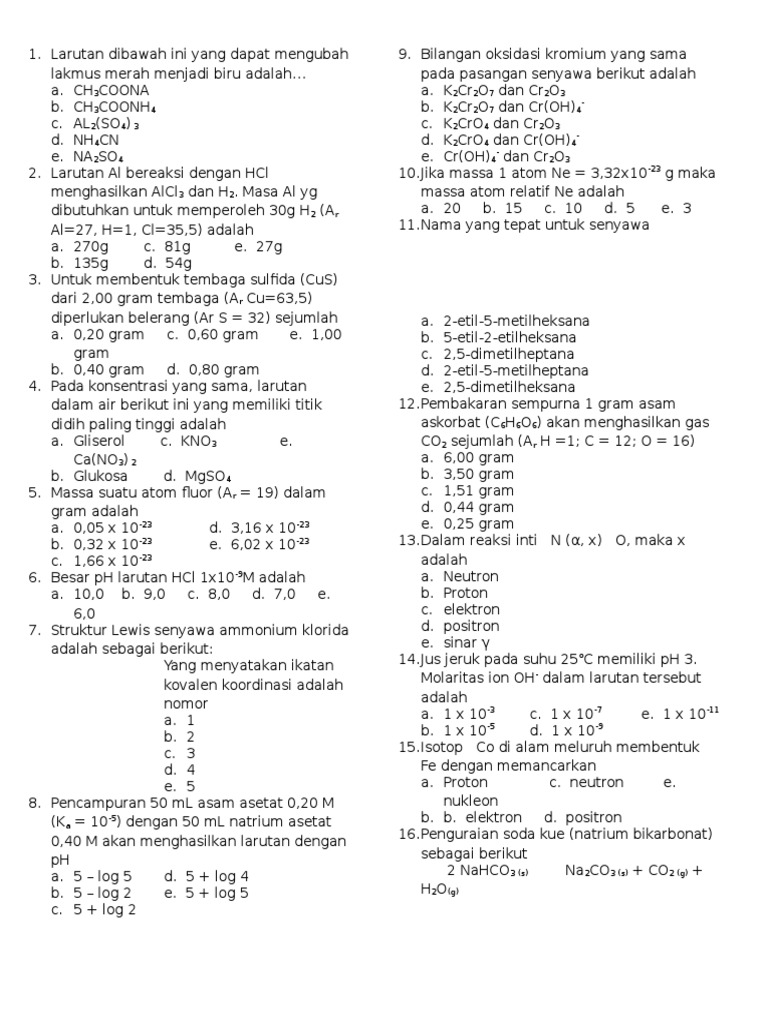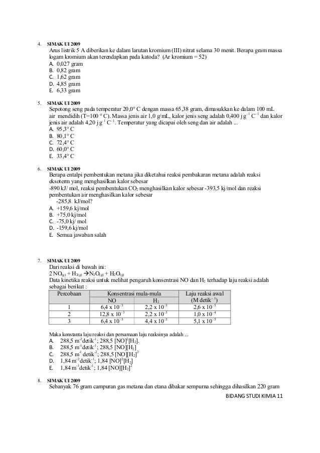 Soal Kimia Kelas 11 – Gudang Ilmu Pustaka