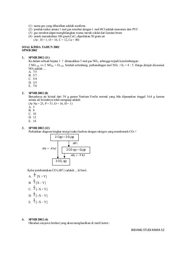 Bank Soal Kimia Bab Termokimia Dan Hidrokarbon