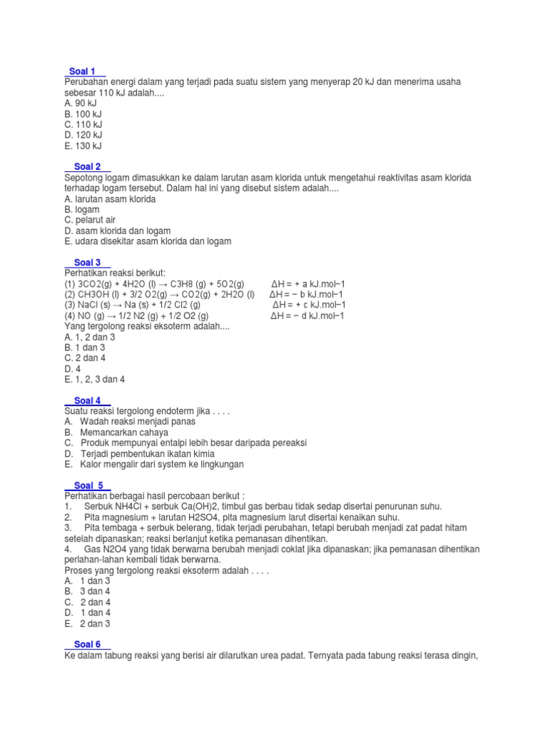 DOC) SOAL LATIHAN TERMOKIMIA (DIKUMPULKAN KAMIS, 14 SEPTEMBER 2017 | Meiva Gari - Academia.edu