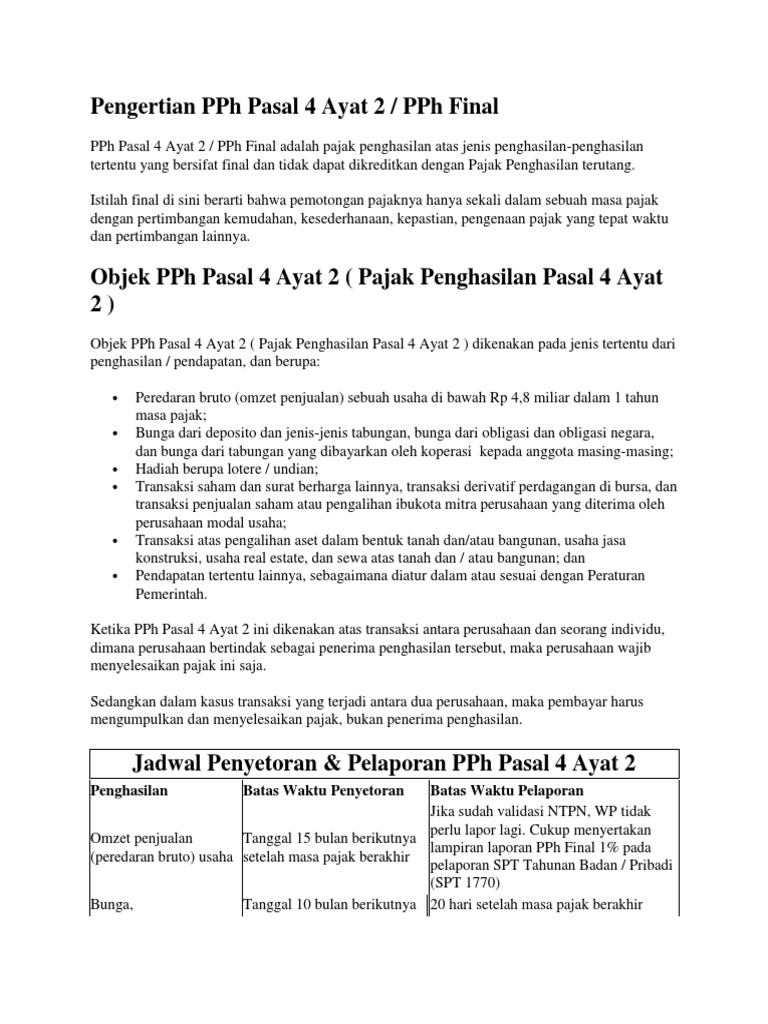 Kumpulan Data Pph Pasal 4 Ayat 2