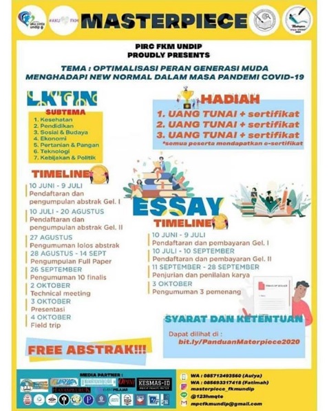 PORTAL KOMPETISI DAN BEASISWA: Lomba Essay dan Karya Tulis Ilmiah Nasional (LKTIN) Event Masterpiece 2020 PIRC FKM Undip