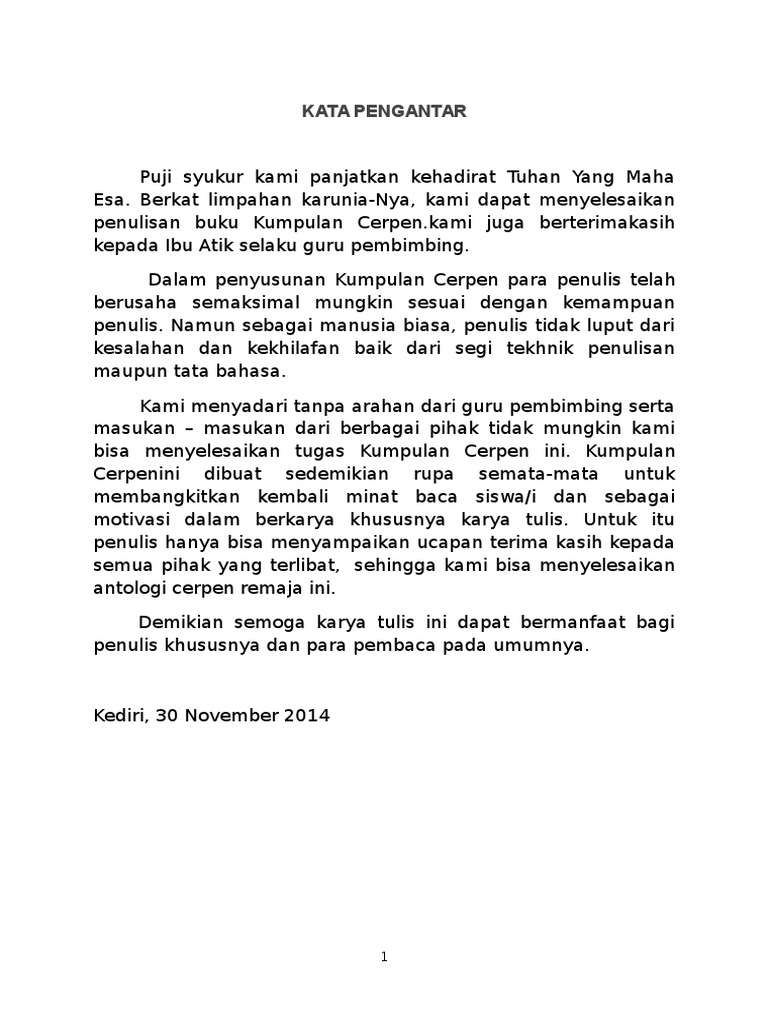 Contoh Kata Pengantar Buku Kompilasi Cerpen