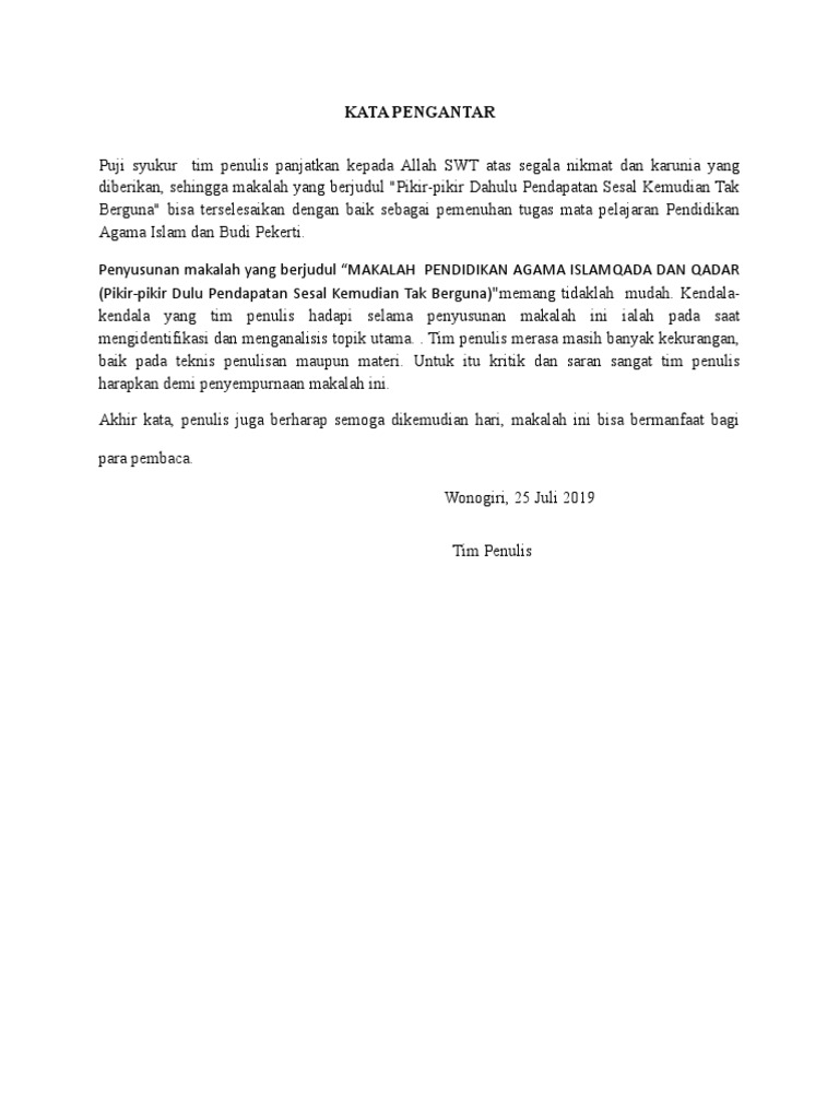 Contoh Kata Pengantar Makalah Agama - Pipet Blog