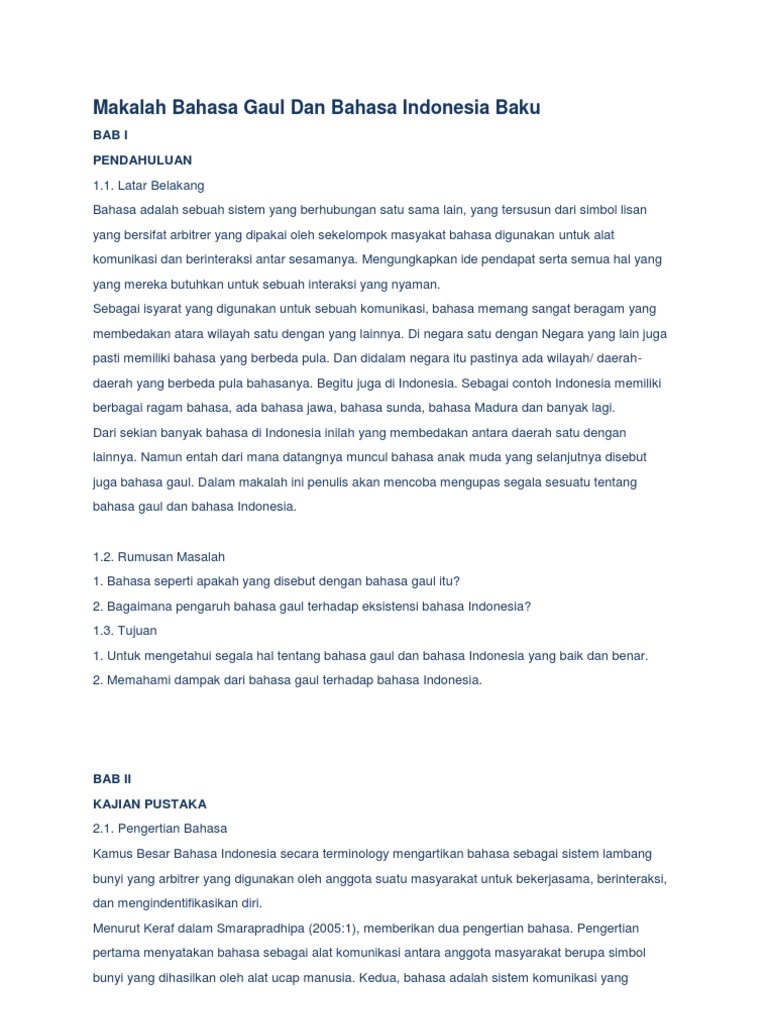 Makalah Bahasa Gaul Dan Bahasa Indonesia Baku