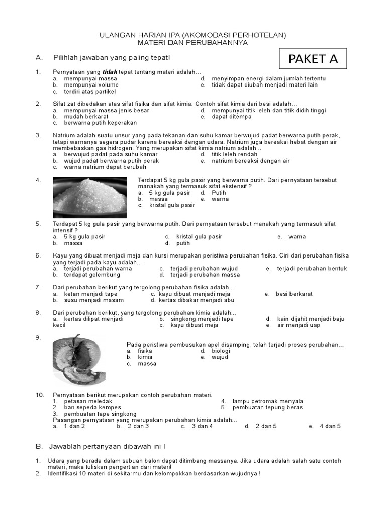 Soal perubahan fisika dan kimia kelas 7 kurikulum 2013 edisi revisi 2017 - Fisika dan Matematika