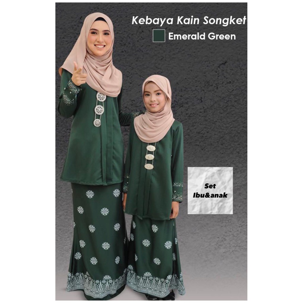 SET IBU DAN ANAK KEBAYA KOSONG KAIN SONGKET PRINTED v.1 | Shopee …