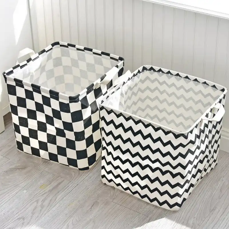 Sederhana Katun Linen Penyimpanan Lipat Keranjang Kain Cetak Hitam Putih Pakaian Persegi Mainan Organizer Tahan Air Laundry Basket|Penyimpanan Keranjang| - AliExpress