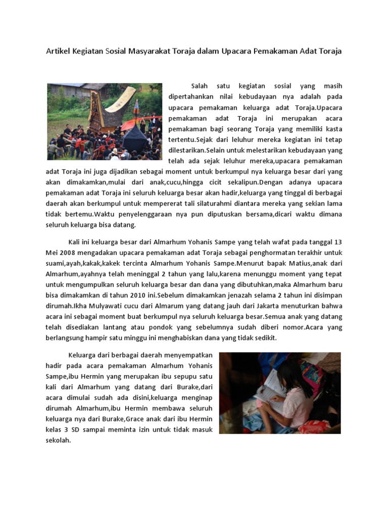 Artikel Kegiatan Sosial Masyarakat Toraja Dalam Upacara Pemakaman Adat Toraja