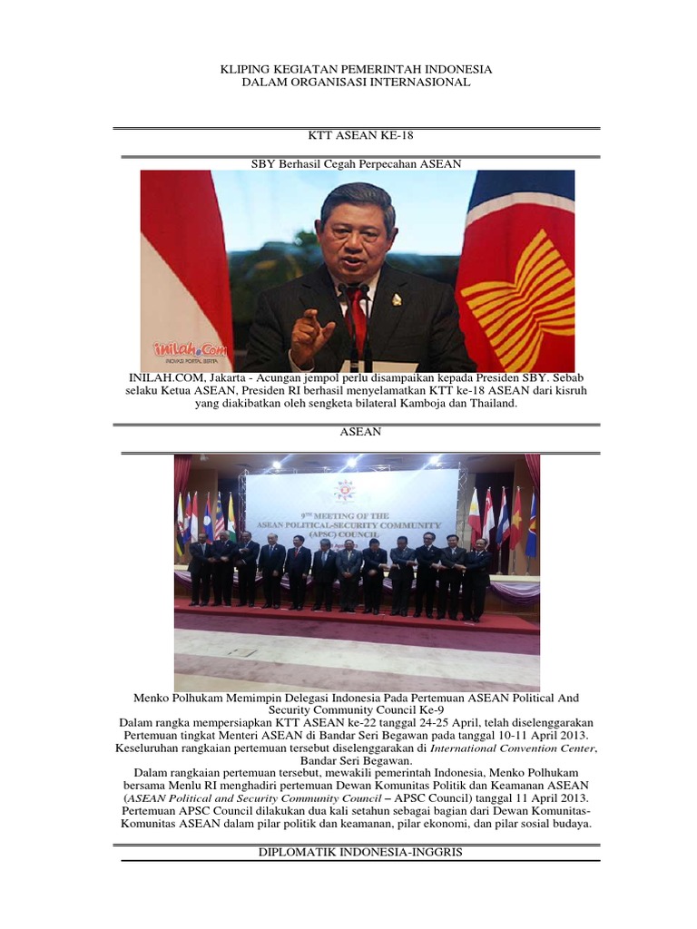 Kliping Kegiatan Pemerintah Indonesia Dalam Organisasi Internasional e