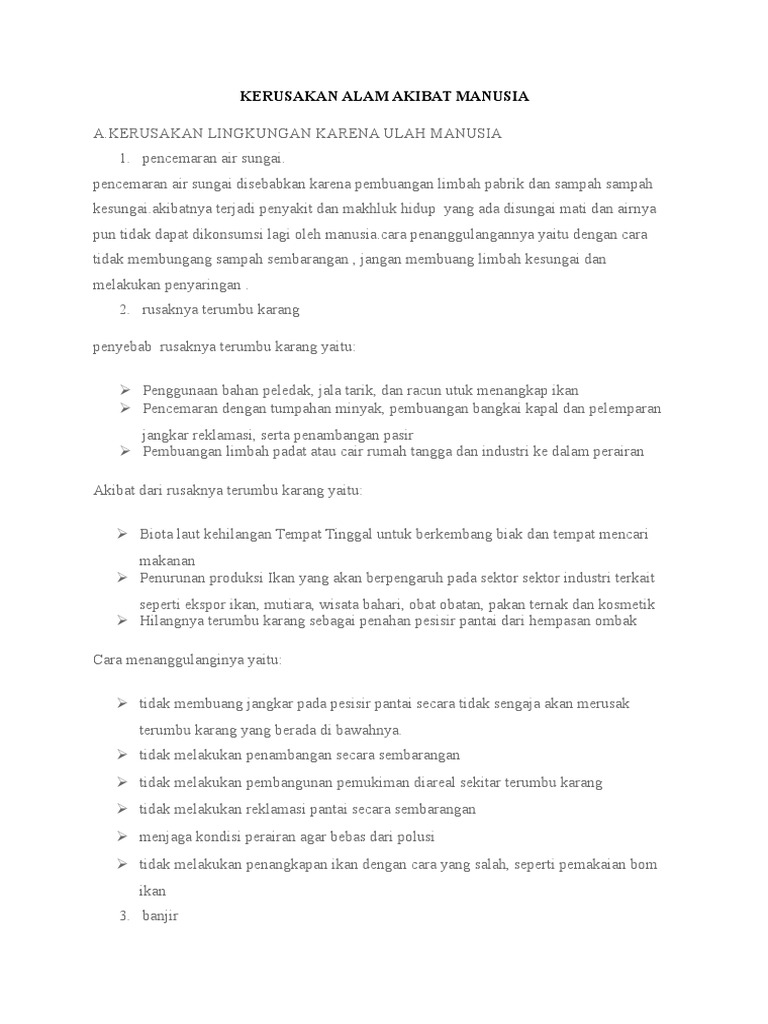 Kerusakan Alam yang Dilakukan Manusia