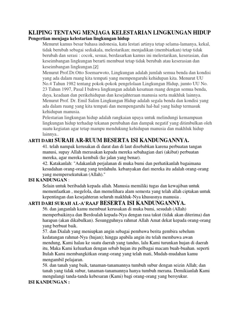 DOC) Makalah Pelestarian Lingkungan Hidup menurut al-Qur’an.docx | Imah Putri - Academia.edu
