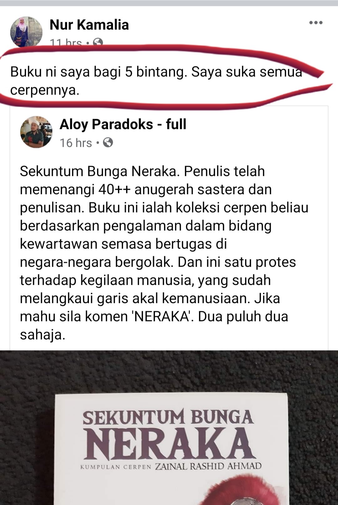 aloy paradoks en Twitter: “Terima kasih atas bintang yang diberi untuk Koleksi Cerpen Sekuntum Bunga Neraka. Siapa berminat sila komen ‘BUNGA’ ye.… https://t.co/ebsm6Owo1p”