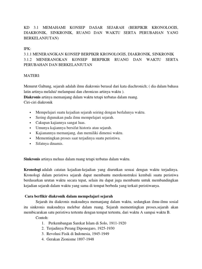 KD 3.1 Konsep Berfikir Kronologis, Diakronis, Sinkronis, Ruang Dan Waktu Dalam Sejarah