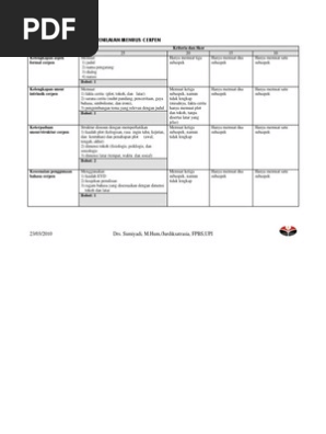 KRITERIA PENILAIAN MENULIS CERPEN - PDF Free Download