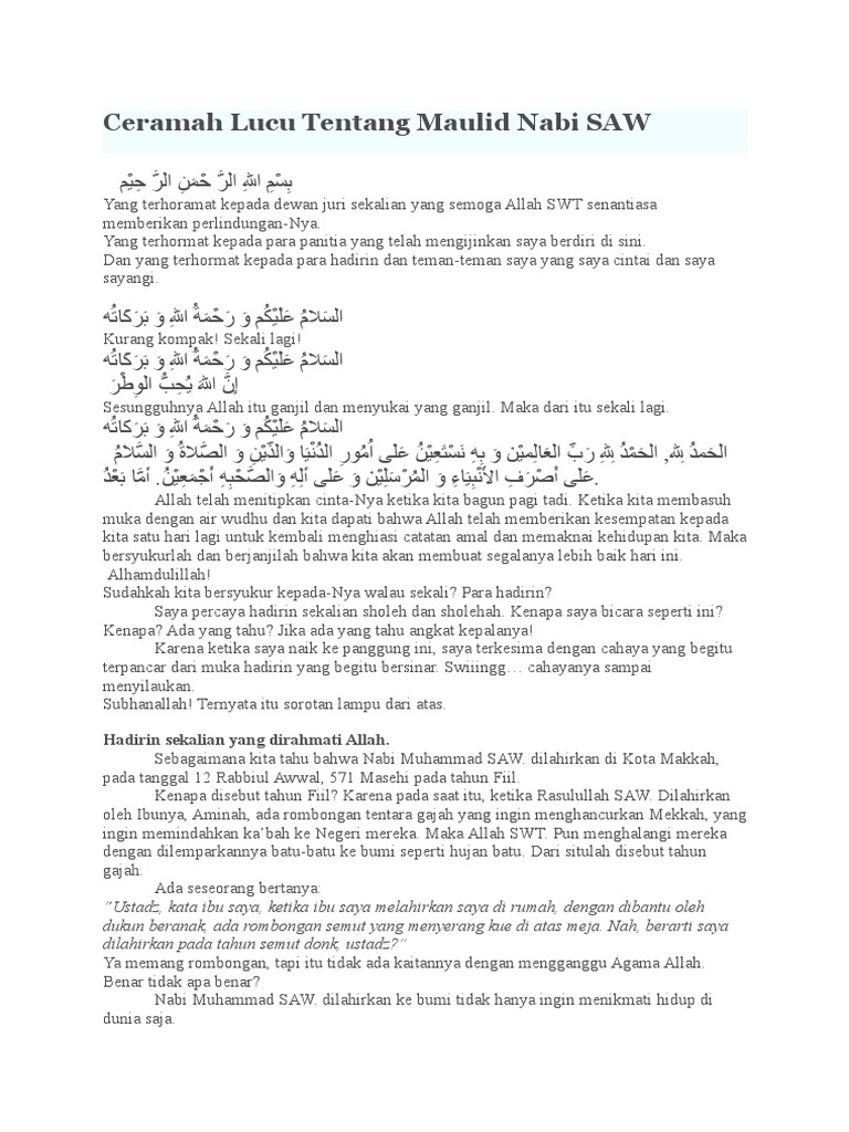 Teks Ceramah Lucu Tentang Maulid Nabi Saw - Berbagai Teks Penting